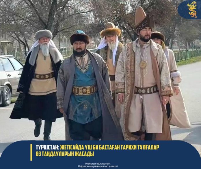 Атап айтқанда, «Жеті жарғы» заңын енгізіп, қазақ тарихында әділетті билігімен мемлекеттілікті нығайтқан Тәуке хан мен қазақтың айбынды ханы Абылай хан, ел бірлігі мен әділдіктің символына айналған үш би – Төле би, Қазыбек би, Әйтеке би бейнесіндегі Құрманбек Жандарбеков атындағы Жетісай драма театрының әртістері референдум учаскесіне арнайы келіп, өз таңдауларын жасады.