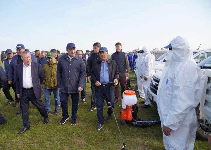 🔰Өңір басшысына шегірткеге қарсы қолданылатын арнайы техникалар мен дәрі-дәрмектер таныстырылып, зиянкестер шоғырланған ошақтарда жүргізіліп жатқан химиялық өңдеу жұмыстары көрсетілді. Облыс әкімі жауаптыларға жұмысты сапалы әрі уақтылы атқаруды тапсырды.